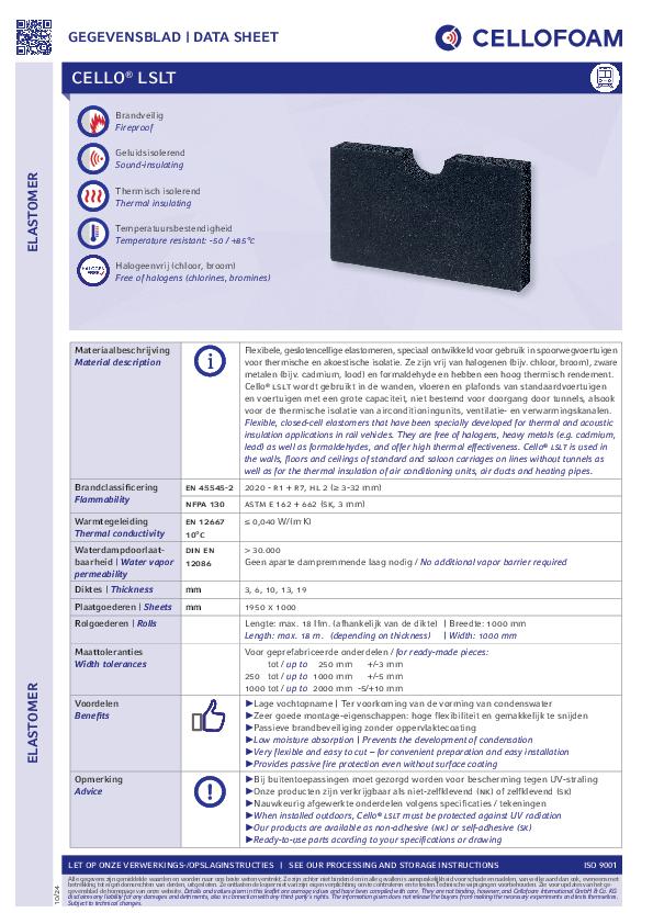 Flexibele elastomeren met gesloten celstructuur, speciaal ontworpen voor thermische en akoestische isolatie in railvoertuigen. Ze zijn vrij van halogenen (bijv. chloor, broom), zware metalen (bijv. cadmium, lood) alsook formaldehyde en hebben een hoog thermisch rendement.Productdetails