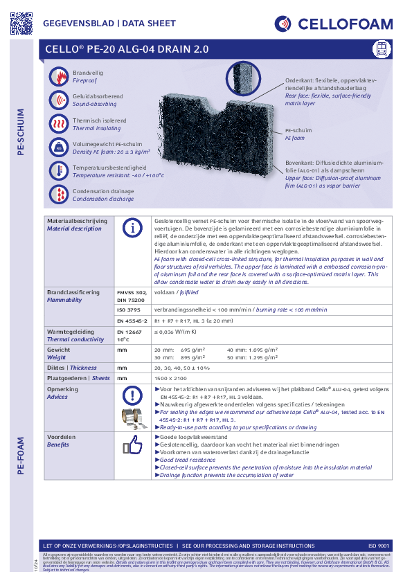 Productgegevensblad Cello PE-20 ALG-04 DRAIN 2.0